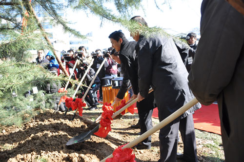 今天我們最親愛(ài)的網(wǎng)友們?yōu)榱吮磉_(dá)他們對(duì)百度的祝福,不遠(yuǎn)千里送來(lái)了代表神州大地五岳之土和長(zhǎng)江、黃河之水。山東網(wǎng)友前往泰山取土,送來(lái)東岳之土;陜西網(wǎng)友前往華山取土,送來(lái)西岳之土;湖南網(wǎng)友前往衡山取土,送來(lái)南岳之土;山西網(wǎng)友前往橫山取土,取來(lái)北岳之土;河南網(wǎng)友前往嵩山取土,取來(lái)南岳之土;網(wǎng)友前往南京長(zhǎng)江大橋,送來(lái)長(zhǎng)江之水;山西網(wǎng)友前往黃河虎口瀑布取來(lái)黃河之水。下面讓我們掌聲有請(qǐng)北京市委常委、海淀區(qū)位書記趙鳳桐先生;山西省省委常委、統(tǒng)戰(zhàn)部部長(zhǎng)李政文先生;山西省政協(xié)副主席衛(wèi)小春先生;我們的董事長(zhǎng)兼首席運(yùn)營(yíng)官、執(zhí)行官李彥宏先生;首席財(cái)務(wù)官杰尼;技術(shù)首席執(zhí)行官李一男;副總裁任旭陽(yáng)一起前往植樹區(qū)進(jìn)行植樹環(huán)節(jié)。有請(qǐng)。