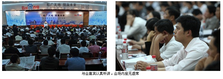 6月10日,陰雨綿綿?!盃I銷中國行”活動在鹽隆重拉開帷幕。此次活動旨在探討如何提升企業(yè)網(wǎng)絡(luò)營銷能力來促進(jìn)地方經(jīng)濟(jì)繁榮,受到政府、學(xué)術(shù)界、商界的高度重視。市經(jīng)信委主任羊維達(dá)、臺灣因特網(wǎng)營銷研究協(xié)會秘書長陳定震、百度公司服務(wù)管理部總監(jiān)任建斌、百度公司渠道部銷售總監(jiān)欒天、百度公司渠道部渠道經(jīng)理曹宇等35位嘉賓以及500多家鹽城市重量級企業(yè)家代表出席了活動,共同見證這一盛況!